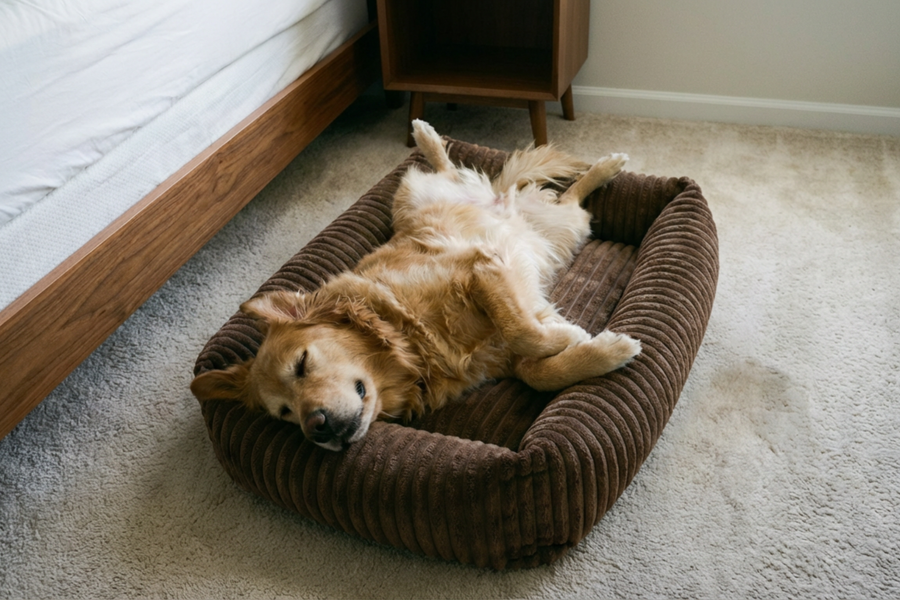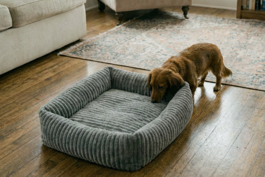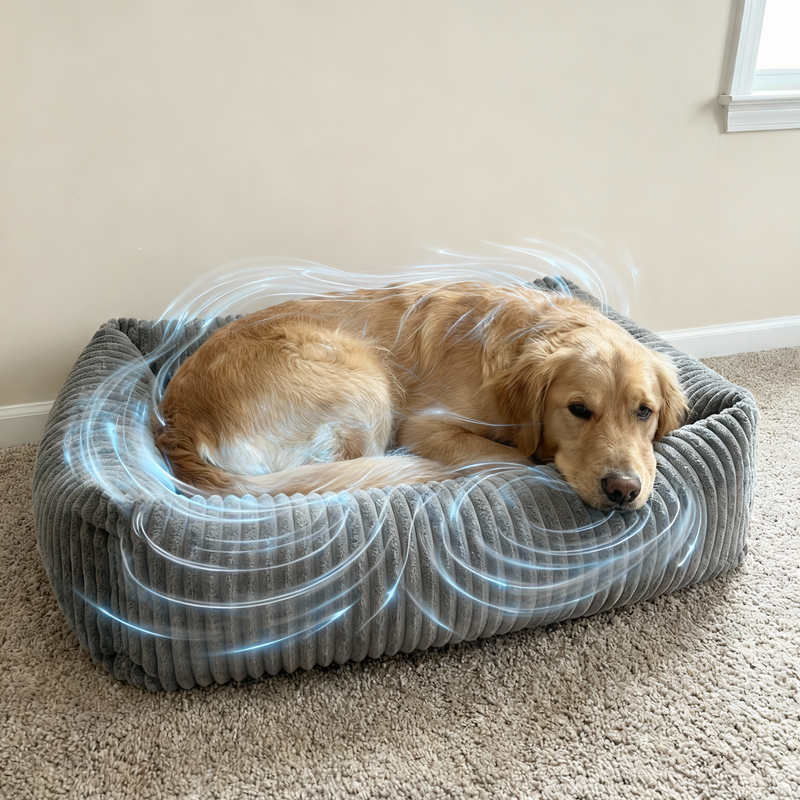 Im Inneren sorgt ein komfortables Kissen mit hochwertiger PP-Baumwolle-Füllung für Volumen, Formstabilität und ein angenehm weiches Liegegefühl. Das Material passt sich sanft an den Körper deines Lieblings an und bietet genau die richtige Balance aus Nachgiebigkeit und Halt – ideal zum Einrollen, Ablegen oder Ausstrecken.